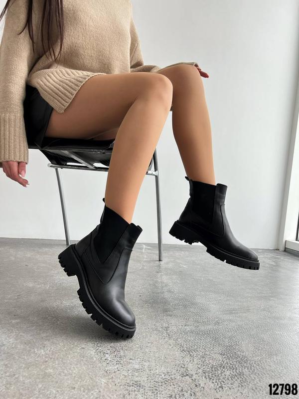 Код 12798 Челси ЗИМА Натуральная кожа Цвет Черный Высота от подошвы 14см Подошва 5см Внутри полушерсть Размер в размер Производитель Украина 36-23,5см 37-24см 38-24,5см 39-25см 40-25,5см