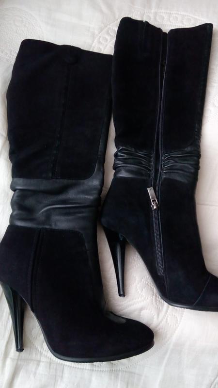 нарядные сапожки из натуральной мягусенькой замши, кожа на вставках -натуральная, лайковая, как на перчатках, европейка, размер указан 36(полномерный), стелька 24 см