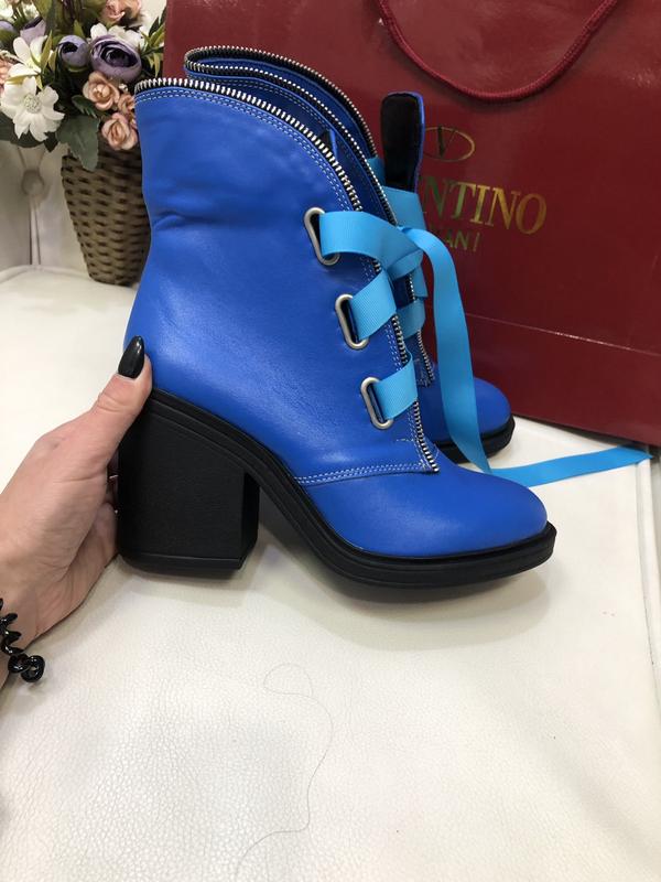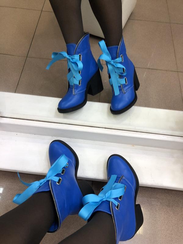 Цвет еа выбор! кожаные голубые ботинки с опушкой с норки