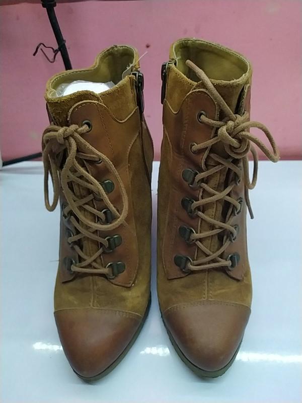 Демисезонные замшевые ботинки с имитацией шнуровки. Размер маленький - 36 (на длину стельки 23-23,5 см). Удобные, красивого рыжего цвета. Не ношенные. Испанские