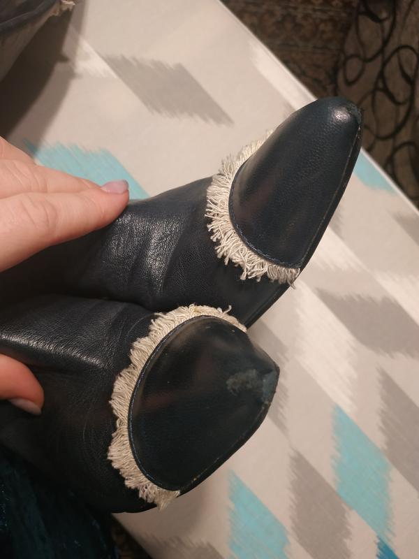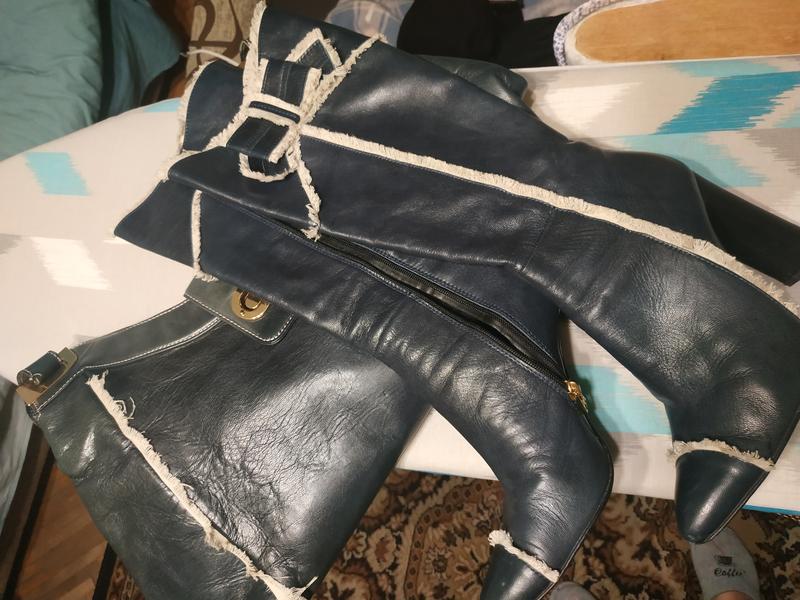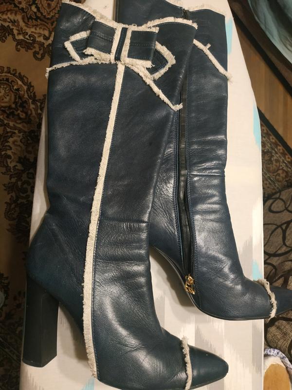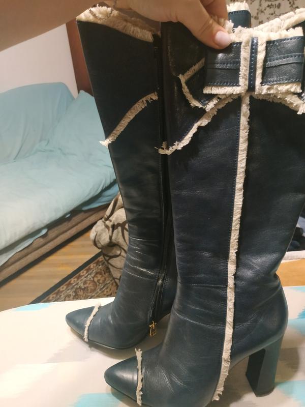 Кожаные сапожки Goianna тёмно-синего цвета 40 р. с декорированием "бахромой". Каблук 11 см. Из дефектов - немного счесан нос изделия. Внутри и снаружи кожа. Набойки на каблуках новые.