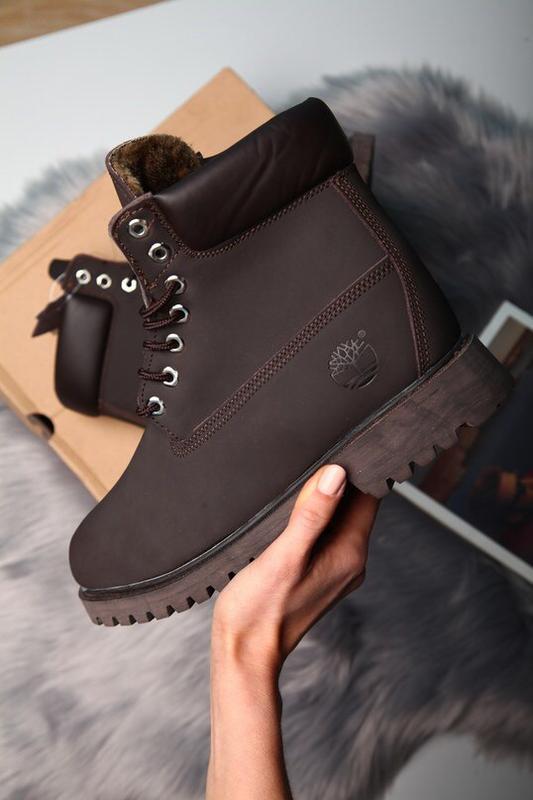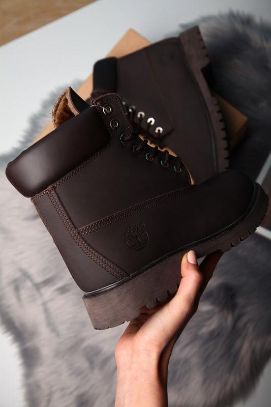 Зимние меховые ботинки timberland в коричневом цвете /осень/зима/весна😍