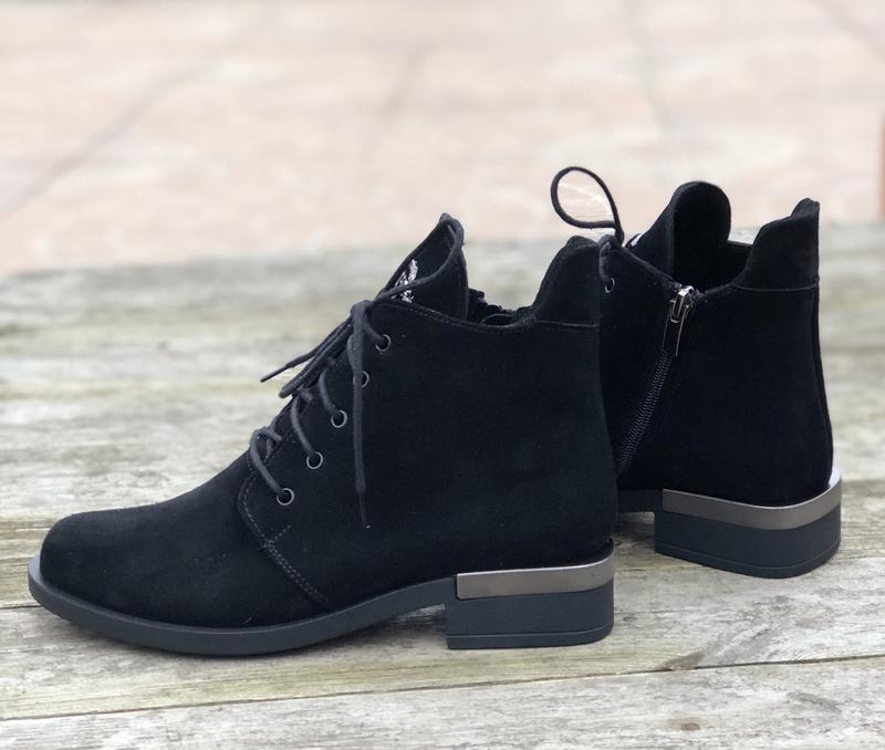 Классические замшевые ботинки женские демисезонные (весна осень) на низком устойчивом каблуке черные M.KraFVT 1014. Модные ботинки - незаменимая деталь обувного гардероба каждой современной женщины. Они отличаются своей практичностью, внешним видом и главное - комфортом! Данная модель имеет современный и стильный дизайн. Это удобная повседневная обувь. Новинка этого года. Колодка удобная - позволяет носить обувь долго не беспокоясь об усталости ног. Отличный выбор для тех, кто ценит свой стиль и комфорт.