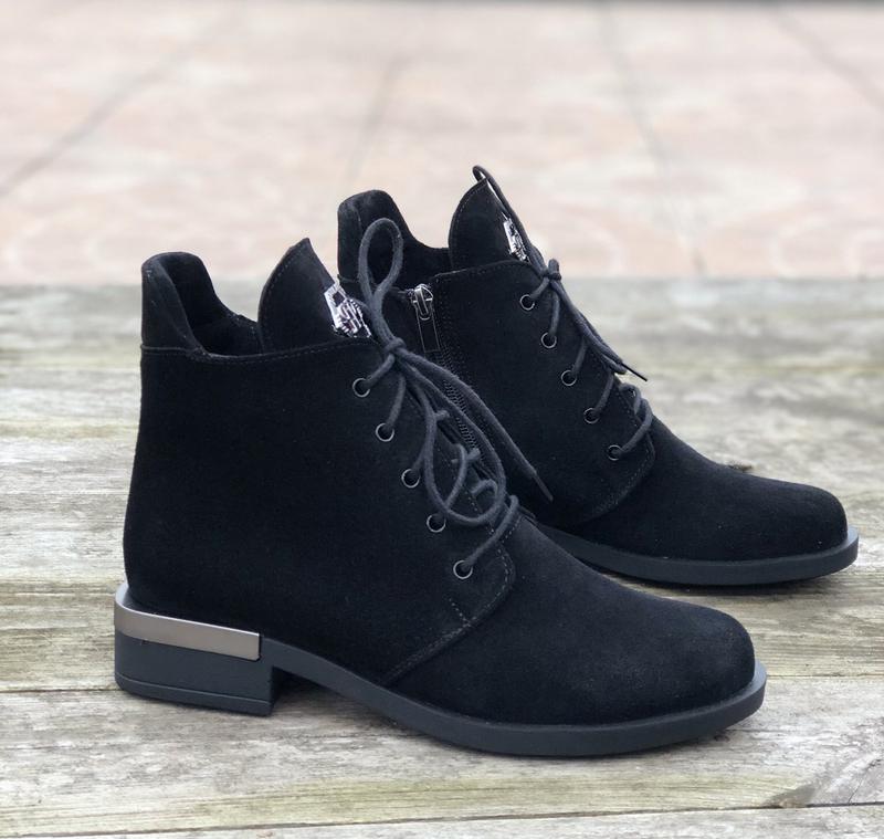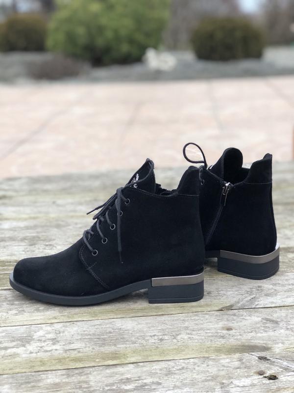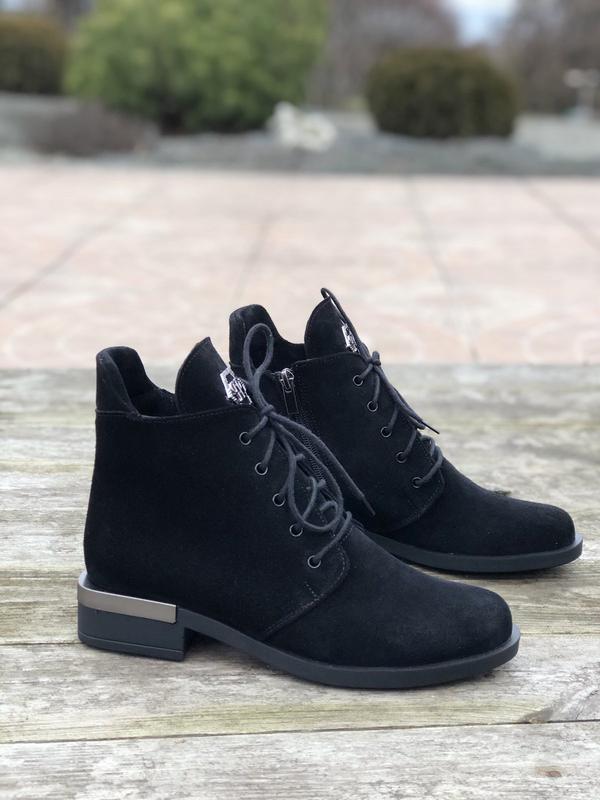 Данная обувь отличается высоким качеством по доступной цене, при правильном уходе она прослужит Вам не один сезон. Сделана из прочных и износостойких материалов. Стильно и красиво смотрится на ноге. Ботинки полностью изготовлены из натуральной замши. В такой обуви практически не потеют ноги. ТЭП подошва обеспечит долговечность, а наличие подкладки и стельки из байки – дополнительный комфорт и оптимальный внутренний микроклимат. Анатомически правильная форма и легкая подошва не дадут ногам уставать в течение длительного времени. Простой и стильный дизайн, аккуратная отделка делает их универсальной обувью, которая удачно дополнит повседневный образ. Они идеально подойдут для межсезонья. Эти удобные осенние весенние ботинки женские натуральные кожаные – отличный выбор, который подарит вашим ногам легкость и уют, подчеркнут вашу индивидуальность.