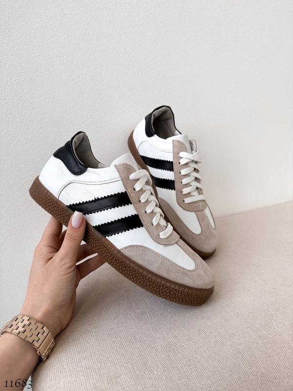 Минималистичная классика кеды белый+бежь+черный натур кожа/замша
