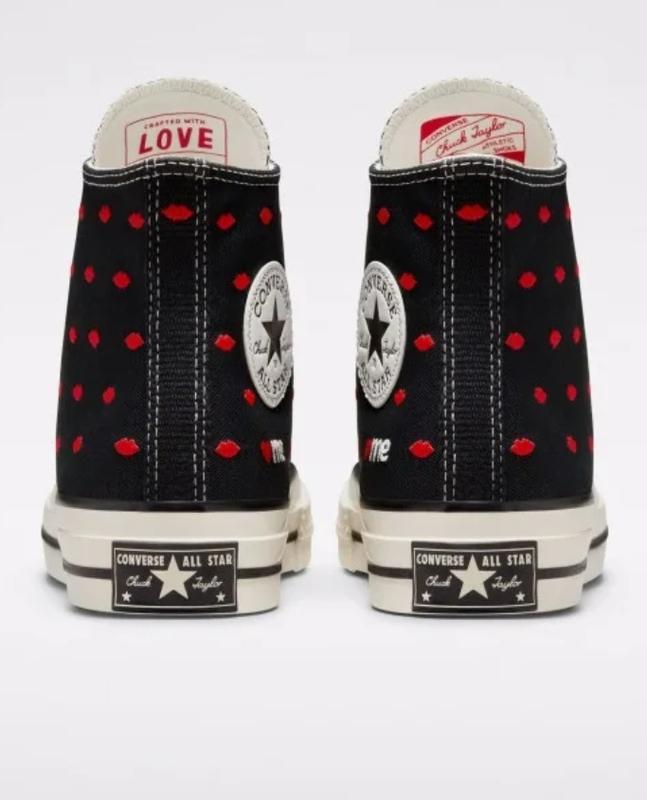 Ці високі кеди Chuck 70 поєднують у собі відомі елементи Chuck Taylor, які ви знаєте та любите, з вишитими поцілунками по всій поверхні та принтом у вигляді поцілунку на підошві.