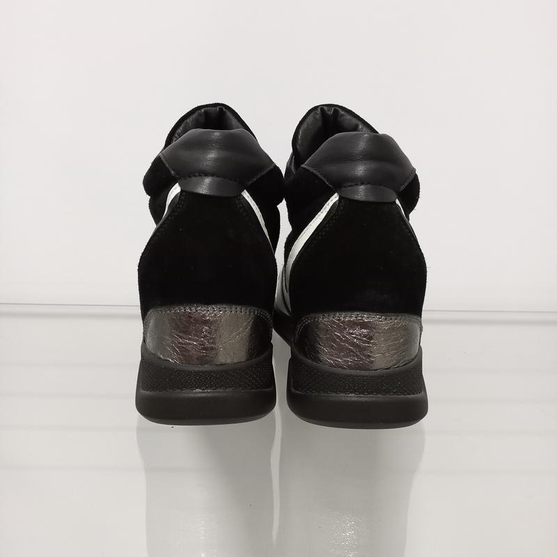 Черные замшевые женские кроссовки сникерсы с яркими белыми вставками не