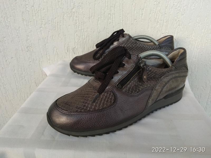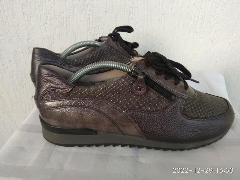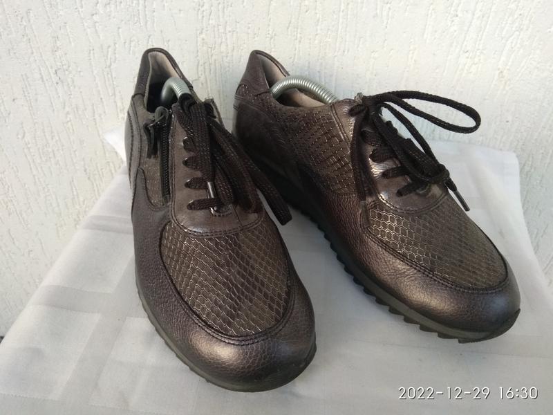 Кожанние спортивние туфли,кроссовки Waldlaufer р.37.5,оригинал. Состояние отличное. Снаружи кожа натуральная,внутри кожа натуральная+елемент текстиля. Длинна по стельке 24.5 см.,ширина 8 см.Cнаружи кожа напоминает кожу змеи.