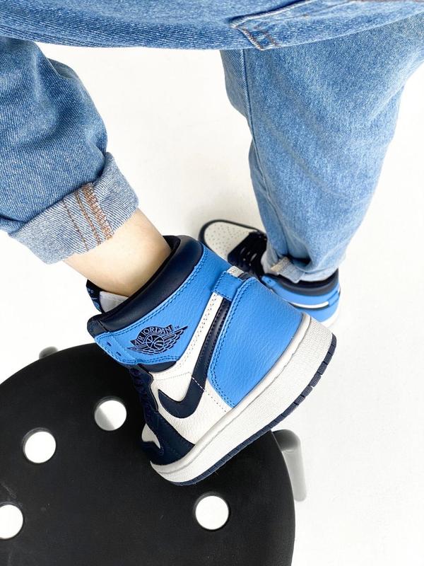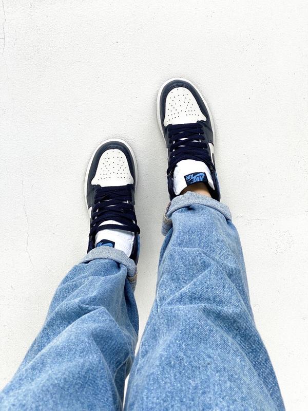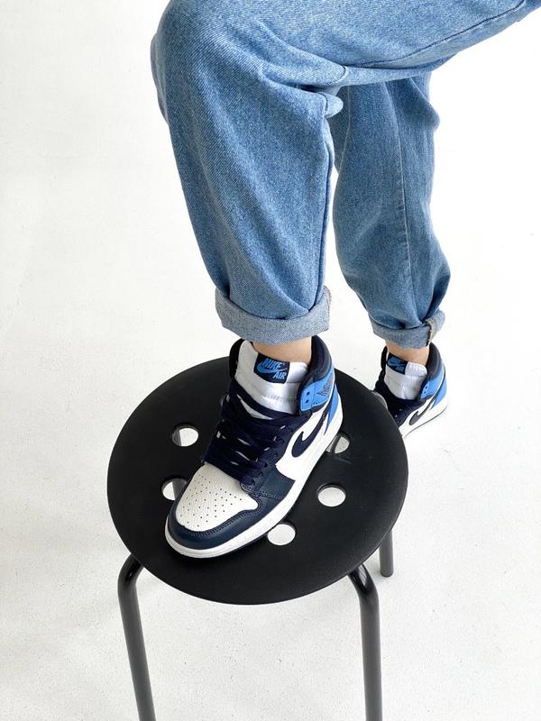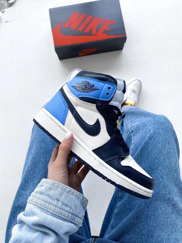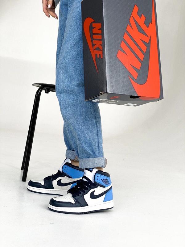 Новые женские кожаные кроссовки Nike Air Jordan 1 High Grey Unintelligible Black, высокие, цвет голубой/белый/черный, упакованный в фирменную коробку и упаковочную бумагу