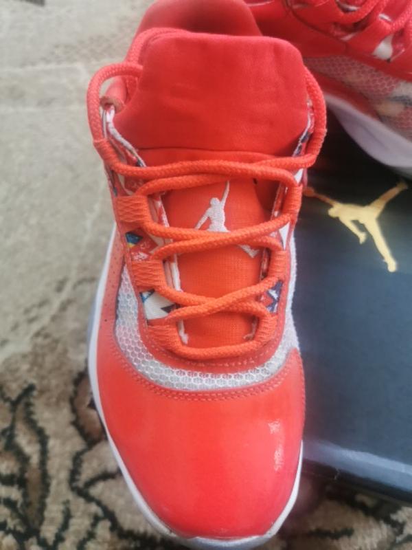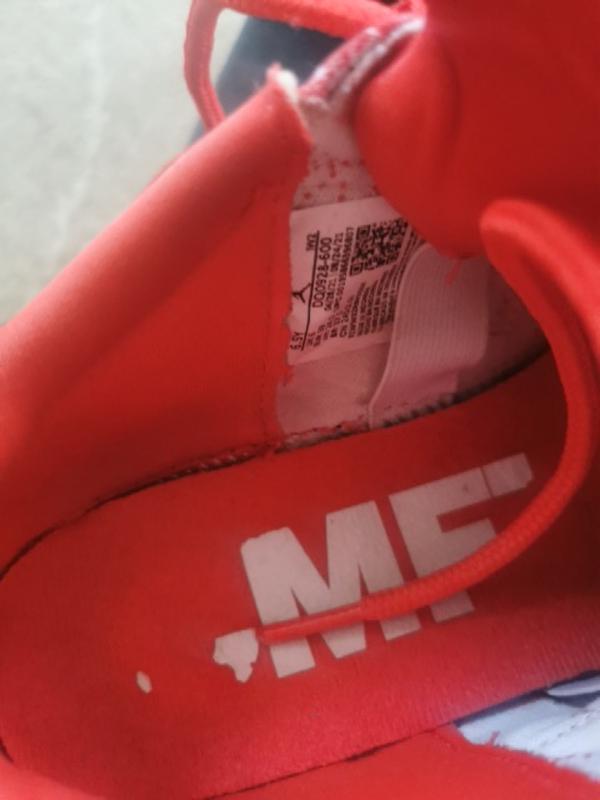Кроссовки nike UIVERSITY jordan,оригинал, очень красивые,яркие и легкие,натуральная кожа лакированная.Ярко-оранжевые, ближни к алому, красивому состоянию дефекты на фото косметические, не большие и не существенные.Куплялись очень дорого.На ножку 25,25.5см