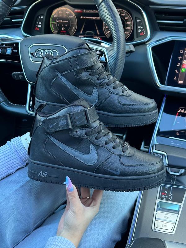 Зимние высокие женские кожаные кроссовки с мехом в стиле nike air force 🆕 зимние найки