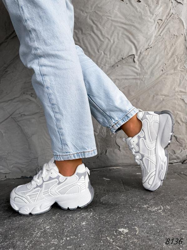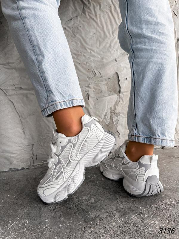 Код: 8136Материал: экокожа + текстильЦвет: белый + серыйподошва: 4 см, спереди: 2,5 смВнутри текстильразмер: 36-4136-23 см37-23,5 см38-24 см39-24,5 см40-25 см41-25,5 см(по примерке на ножку)
