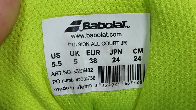 Фирменные кроссовки Babolat, оригиналРазмер указан UK 5 / 38 / 24, длина стельки 24.3 см, ширина стельки 8.5 см.Отличное состояние, без дефектов.