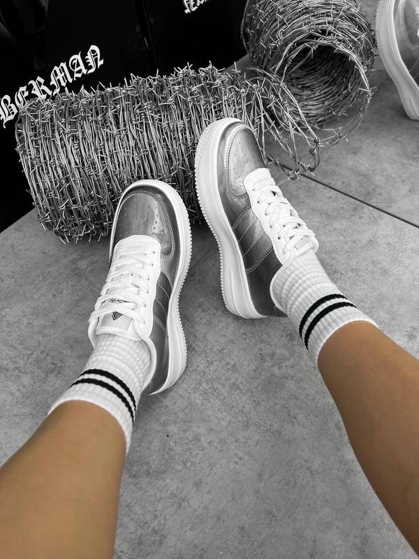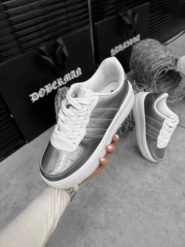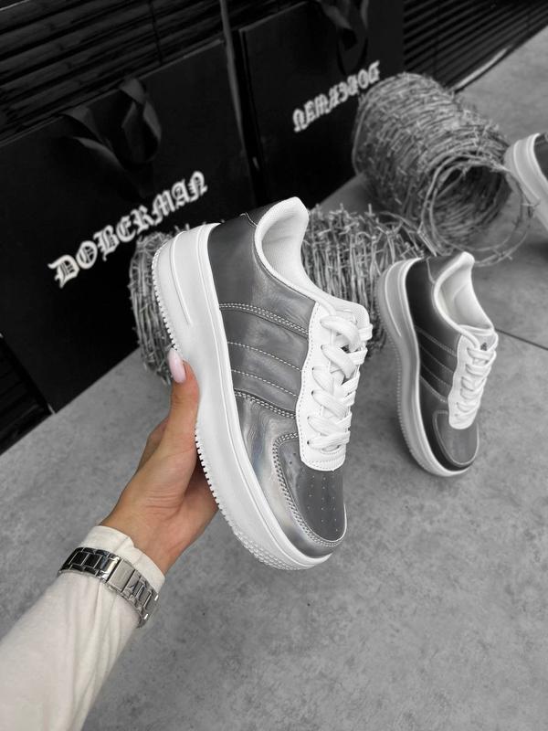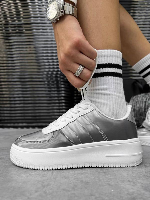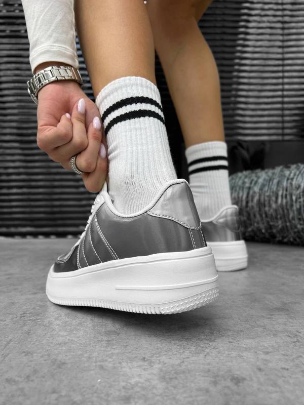 Кросівки кеди жіночі сріблясті сірі переливаються з білою платформою