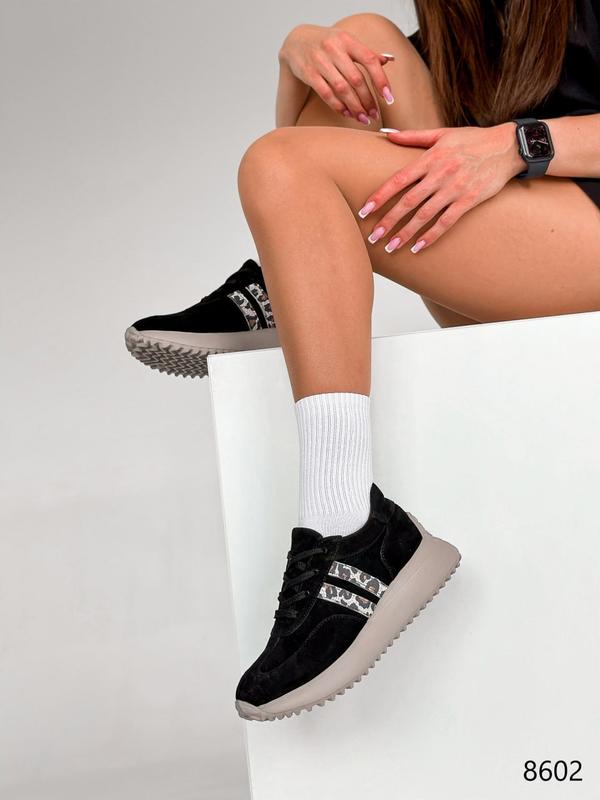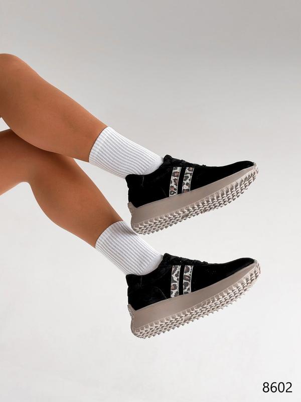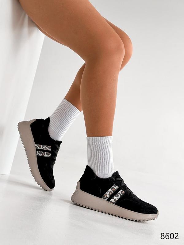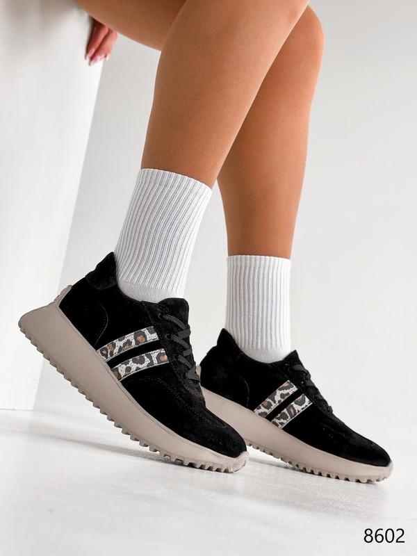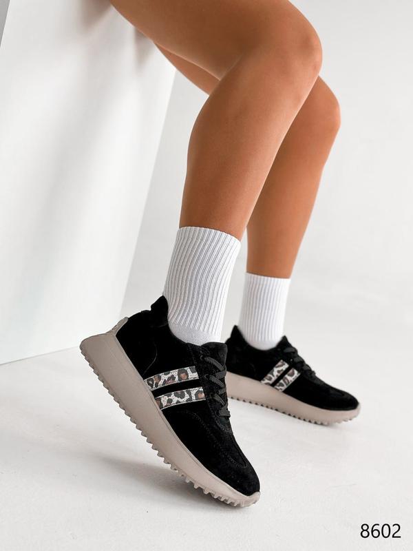 Кроссовки женские Elvira черные + леопард, натуральная замша