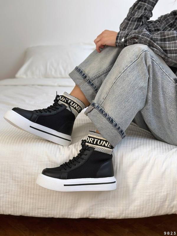 кроссовки женские черные, эко-кожа + обувной текстиль, маломерят на размер, платформа 4,5 см 36 - 23 см 37 - 23,5 см 38 - 24 см 39 - 24,5 см 40 - 25 см 41 - 26 см
