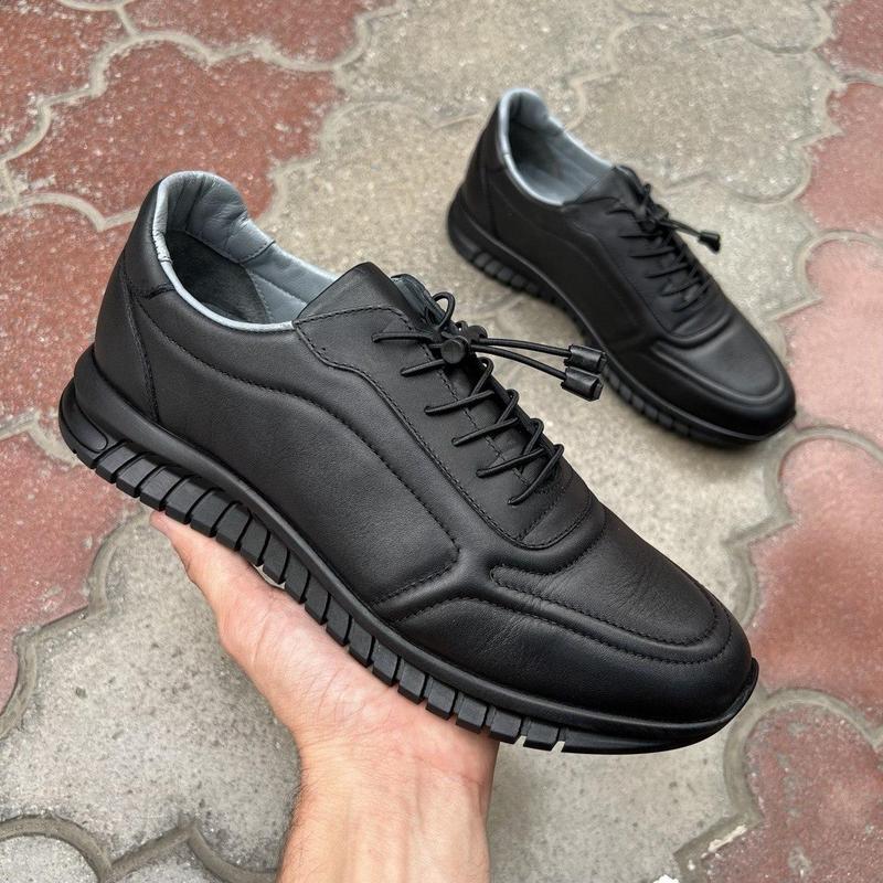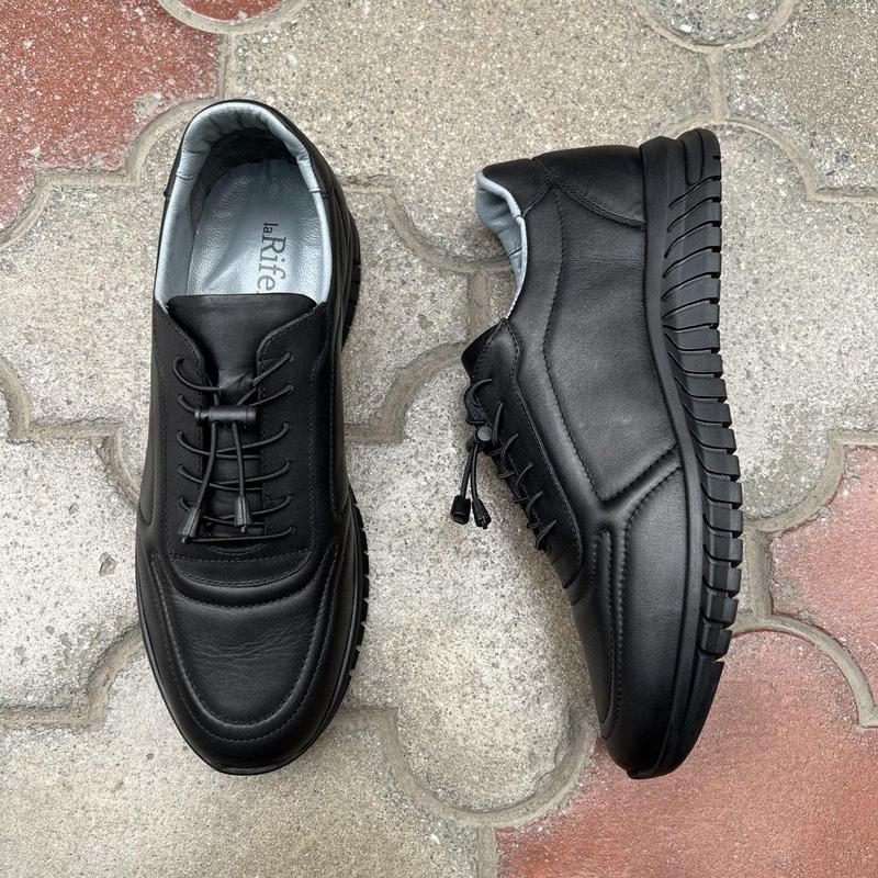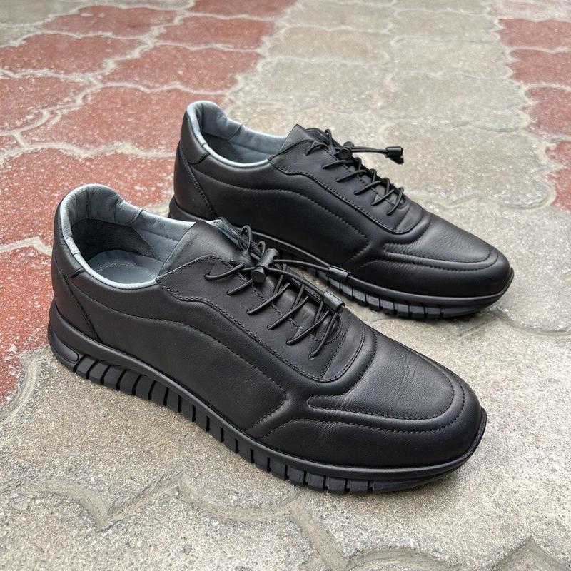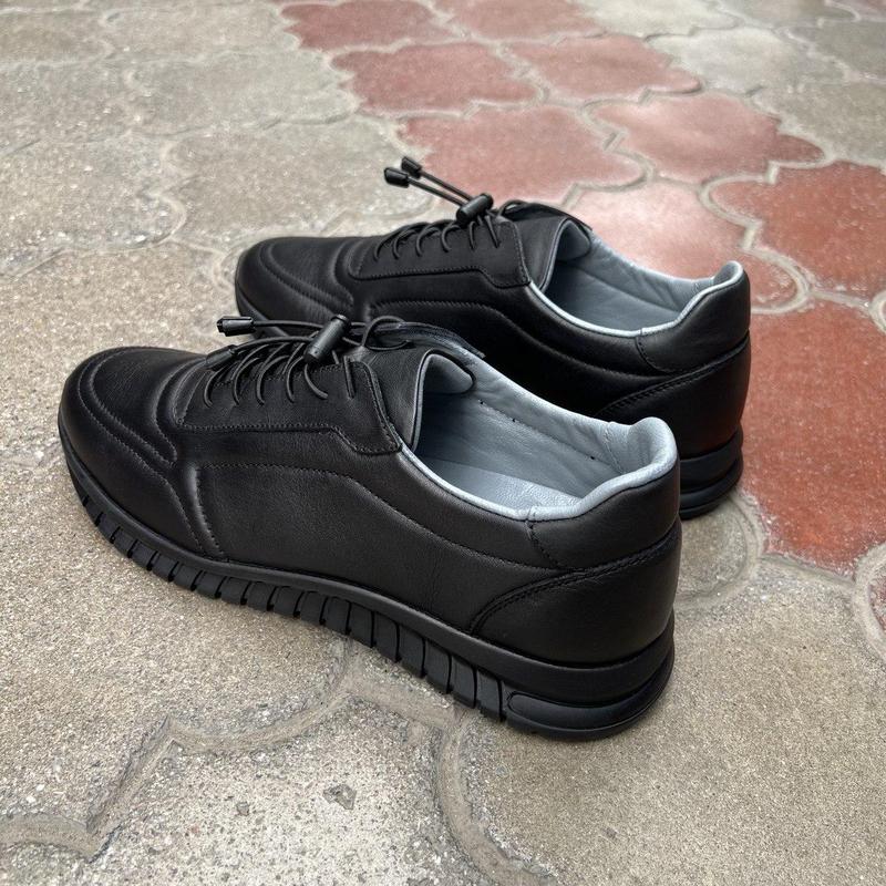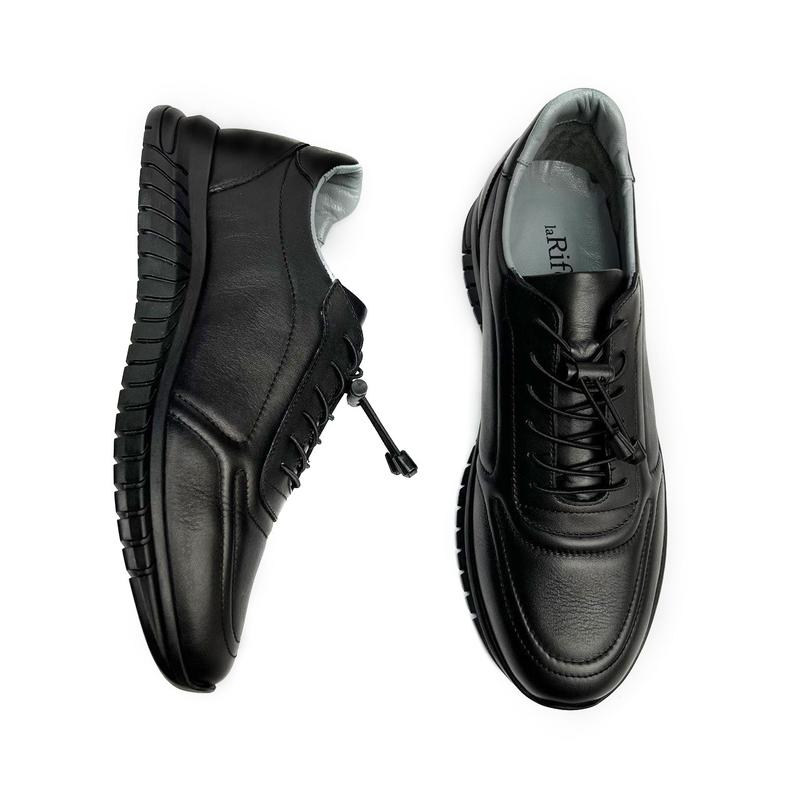 Качественные мужские кеды сделаны из натуральной кожи. Универсальный черный цвет подойдет под любую одежду. Производитель Турция.