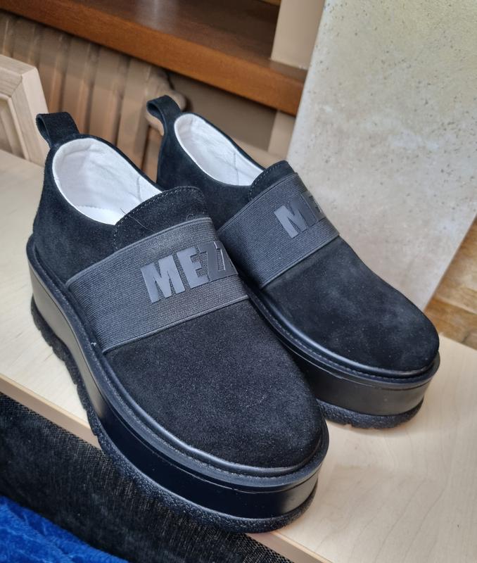 Новенькие кроссовки/туфли/лоферы на высокой подошве. Внутри натуральная кожа, вне натуральная замша. Размер 36 на длину стельки ~ 23 см. На подъемные резинка, поэтому подойдет на любой подъем. Очень стильные