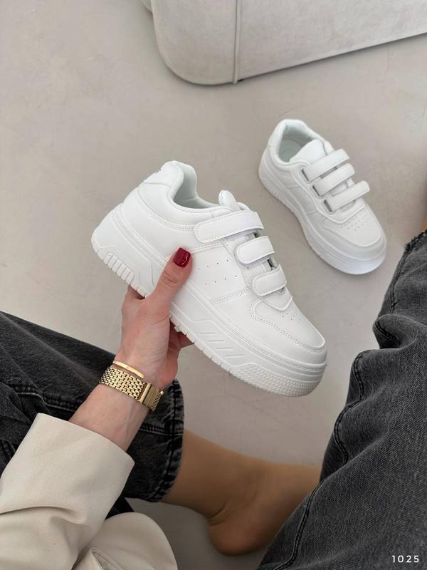 Кроссовки женские белые на липучках, эко-кожа, платформа 5 см 36 - 23,5 см 37 - 24 см 38 - 24,5 см 39 - 25,5 см 40 - 26 см 41 - 26,5 см