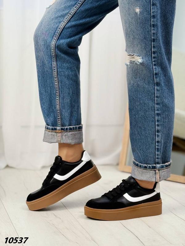 💖💖💖НОВИНКА💖💖💖НОВИНКА💖💖💖НОВИНКА💖💖💖 Код 10537 Кросівки Матеріал верху: Натуральна шкіра+ натуральна замша Mатеріал підкладки: Текстиль Матеріал підошви: ПВХ Колір чорний На шнурівці Висота від п'яти 6 см Висота підошви позаду 4,5 см , попереду 3 см Цифри на підошві не є замірами 🛒Розмірна сітка: 36 - 23,5 см 37 - 24,0 см 38 - 24.5 см 39 - 25,0 см 40 - 25,5 см 41 - 26,0 см