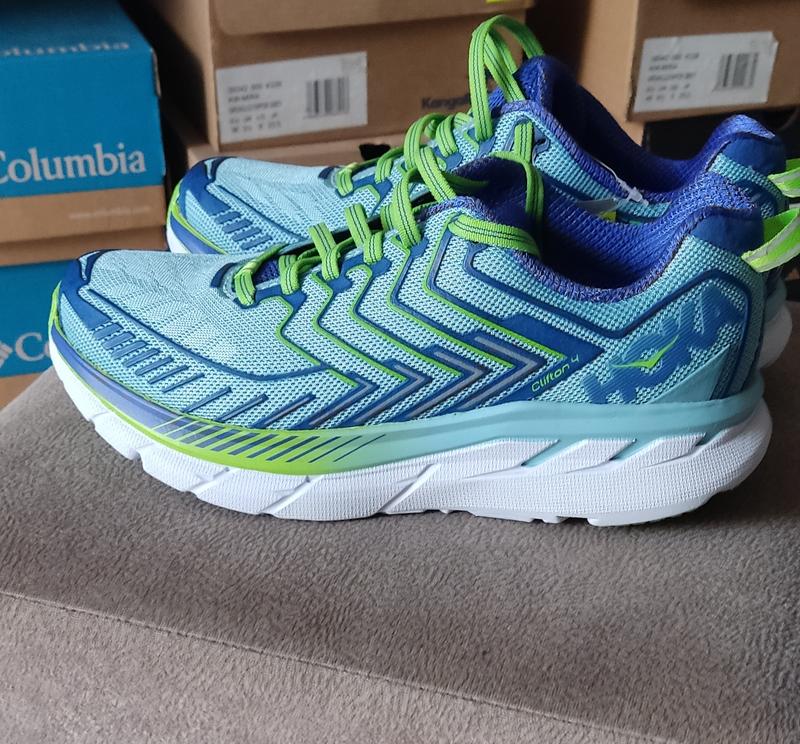 Кроссовки Hoka Clifton 4 Подошва кроссовок выполнена из специального материала, который не ограничивает подвижность стопы. Одновременно с этим, подошва имеет рельеф, который будет препятствовать скольжению. Утолщенная стелька, а также уплотненный задник позволят чувствовать комфорт даже при длительной ходьбе. Верх выполнен из прочной дышащей сетки обувь легкая и удобная стелька 23__23,5___24__24,5 см