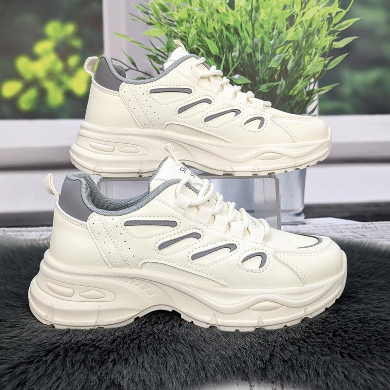 Кроссовки женские ouqidageni молочные с серым на объемной подошве демисезонные 8037