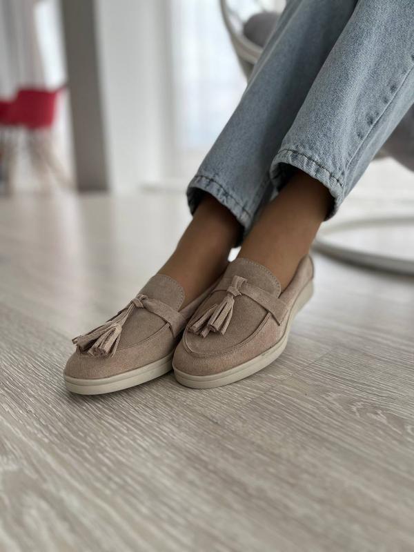 Базовые бежевые замшевые лоферы много цветов
