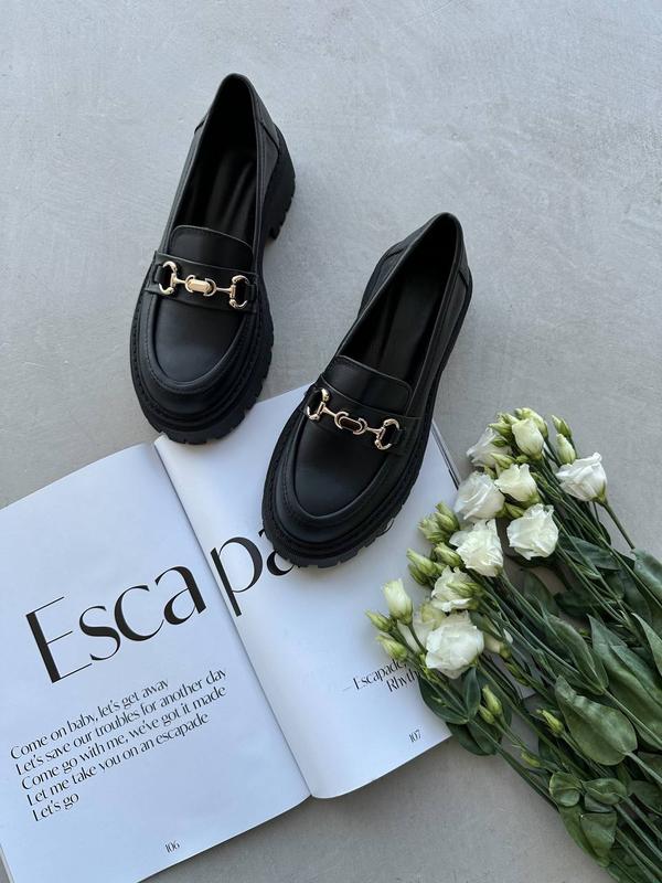 Женские черные кожаные стильные лоферы, туфли на толстой подошве