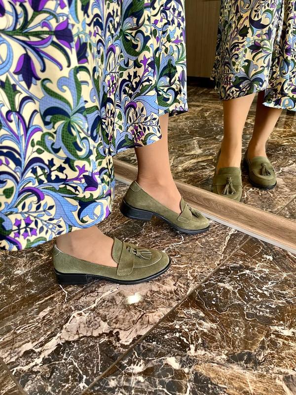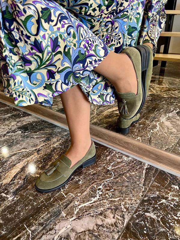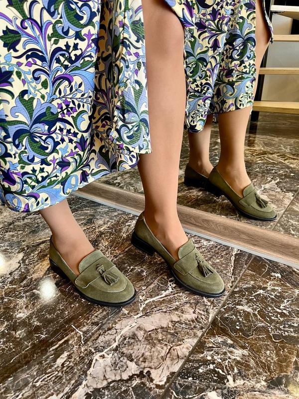 Оливковые хаки зеленые замшевые лоферы