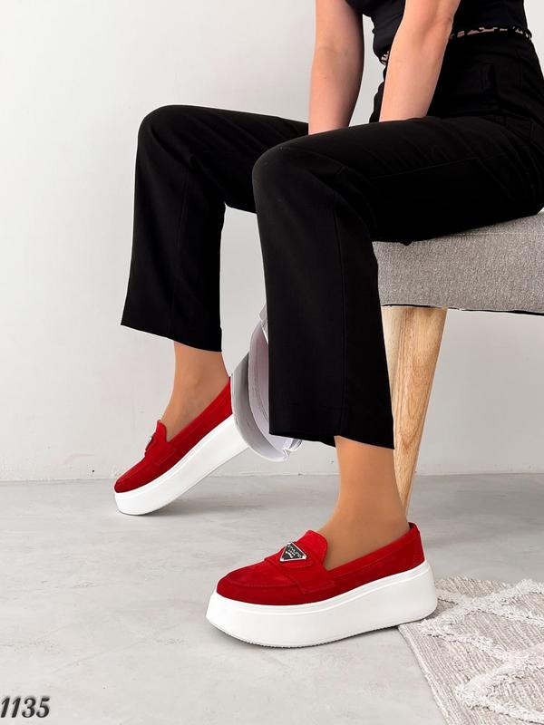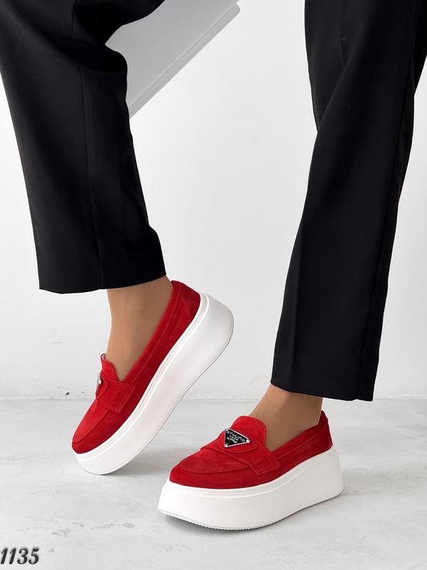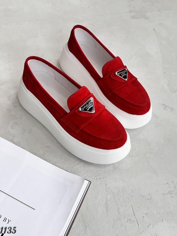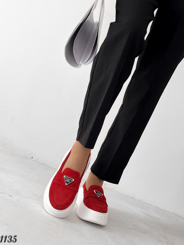 Лоферы женские Код 1135Материал - Нат.замшаВсредние: нат.кожаЦвет - КрасныйПодошва 3,5-5,5смразмеры 36-40Производитель: Украина