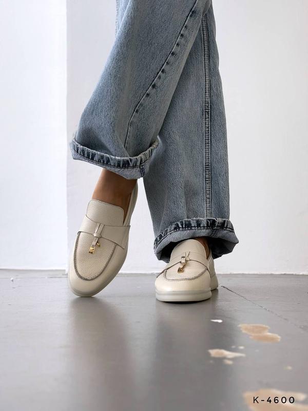 Лоферы женские молочного цвета натуральная кожа, жасненые женккие лоферы