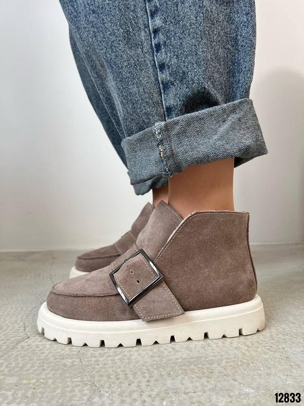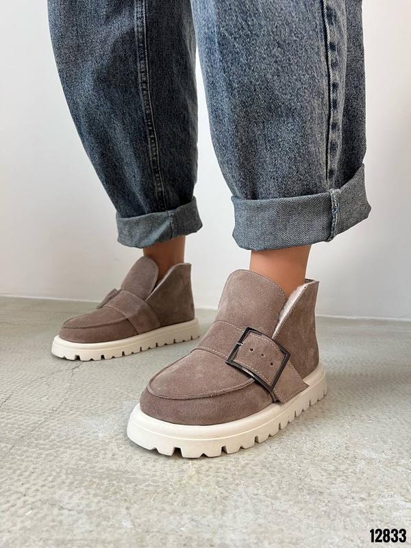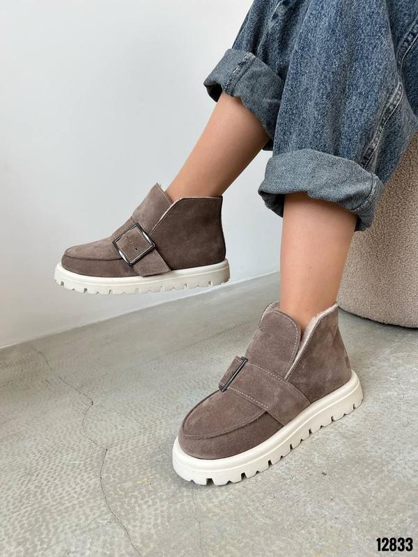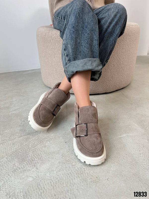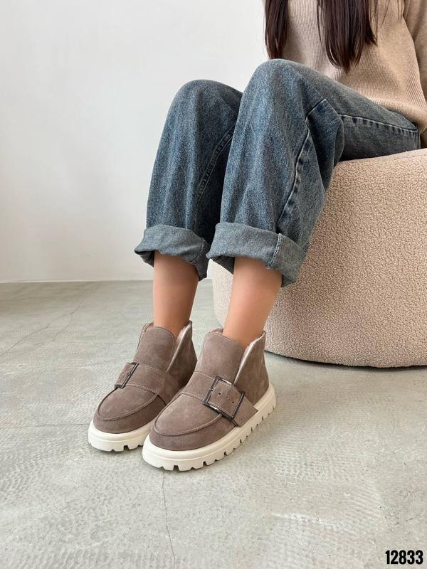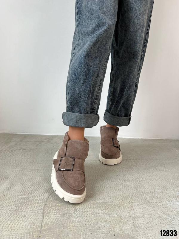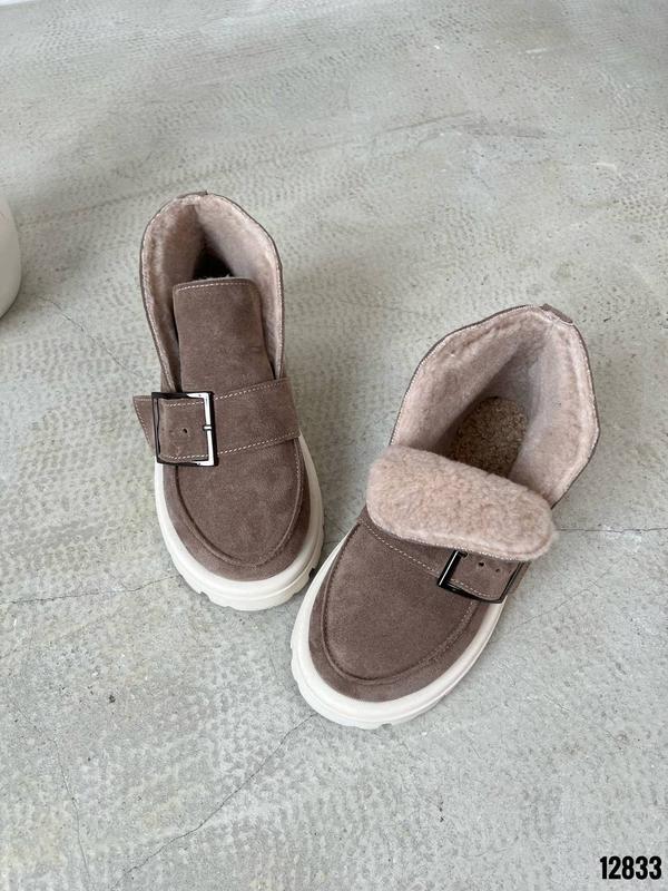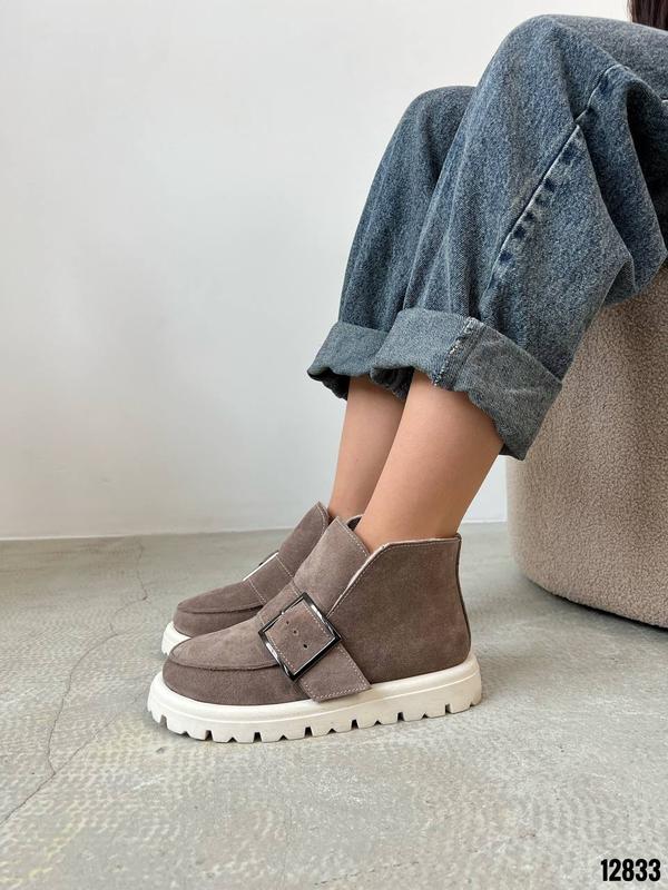 Код 12833Черевики ЗИМА Натуральная замша Цвет Капучино+Беж Высота от подошвы 10см Подошва 4см-3см Внутри полушерстьРазмер в размер Производитель Украина Подойдут на среднюю иболее широкую ножку