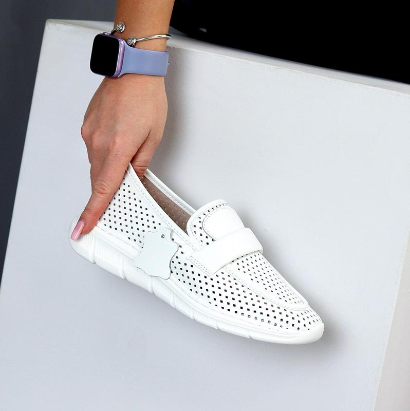МокасиниРазмеры: 36-40Материал - НАТУР. КОЖИРАВнутри - НАТУР. ШКІР. ПІДКЛАДЦвет - БелыйПерфорация сквозная!Подошва - 3.5см/1,5смПроизводитель - Фабричный КитайНа среднюю стопуРазмер в размер37-24 см38-24,5 см39-25,5 см