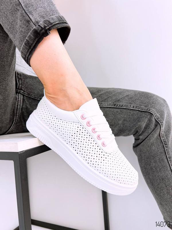 Мокасины Эко-кожаСквозная перфорацияЦвет White+Pink. White+Black