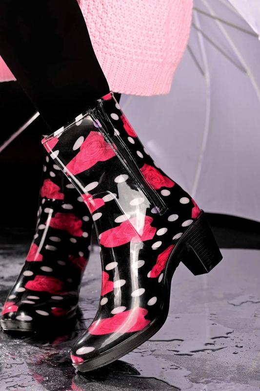 Резиновые сапоги на каблуке с цветочным принтом розы