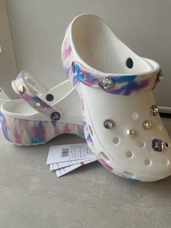 Модель Women's Classic Platform Dream Clog Белые Размер M7W9 на размер 39 Заказывали на офсайте Америки Без учета комиссии Смотрите мои обьявления есть еще предложения оригинальных кроксов В падарок 3 маленьких ДЖИБИТСЫ