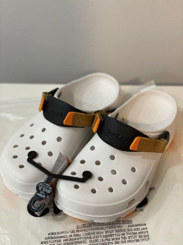 Деталі сабо All-Terrain Summit: Верх із повністю формованої піни Croslite™ Міцна підошва з виступами з покращеним протектором для покращення зчеплення та підтримки Вентиляційні отвори забезпечують повітропроникність і допомагають відводити воду Легко чистяться і швидко сохнуть Регульовані ремінці на п’яті Turbo для щільної та зручної посадки