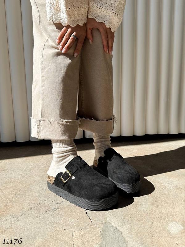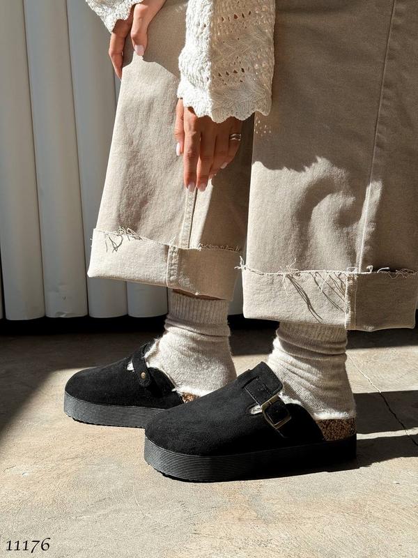 Код 11176Сабо с мехомцвет: ЧЕРНЫЙматериал: экозамшавнутри: искусственный мехподошва: 3 смПроизводство - Венгрия