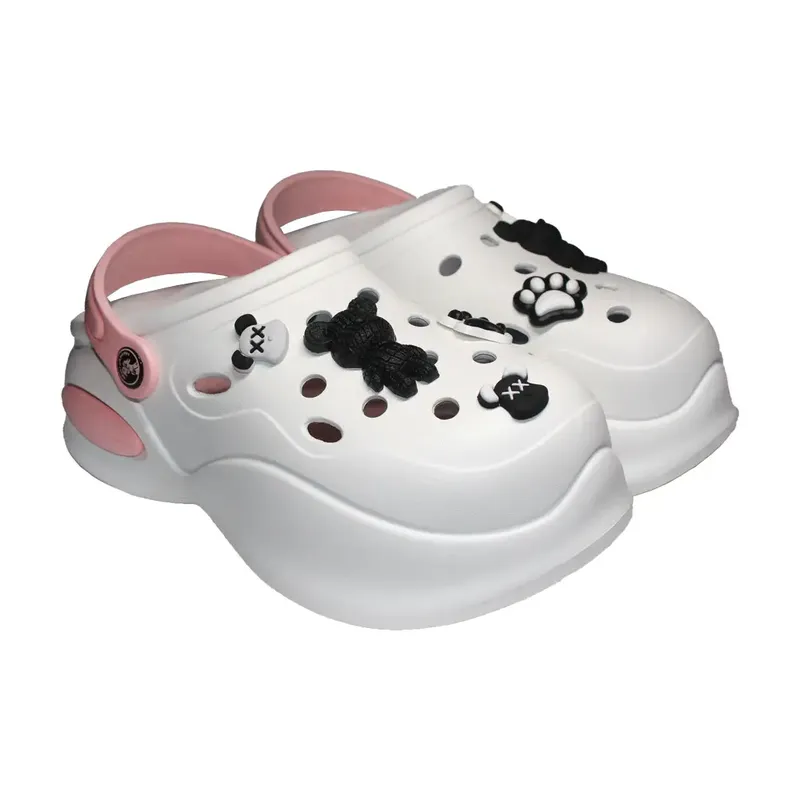 Сабо кроксы женские на танкетке с мишками . Бренд: Jose Amorales (оригинал) . арт. 124461 Цвет: Бело-персиковый Размеры: 36, 37, 38, 39, 40, 41 (при заказе указывайте длину стопы) . ✔️Изготовлены Украинским производителем из гипоаллергенного, экологически чистого, современного полимерного материала ЭВА ✔️Полнота обуви: Средняя . ✅ Обувь не имеет запаха ✅ Отличается легкостью и прочностью ✅ Легко моется и быстро сохнет ✅ Перфорация обеспечивает вентиляцию стоп ✅ Перекидная шлейки надежно фиксирует обувь на ноге ✅ Имеет анатомическую стельку с массажным эффектом ✅ Подошва отлично амортизирует и не скользит ✅ Очень удобно использовать медикам, обслуживающему персоналу, при походе в бассейн, в фитнес центр, на пляж, на прогулки и т.п. ✅ Уникальные джибитсы из ПВХ в виде мишек и лапок придают обуви оригинальный вид . Отправка по Новой почте . САБО женские: https://shafa.ua/uk/member/izymryd?catalog=zhenskaya-obuv%2Fsabo .