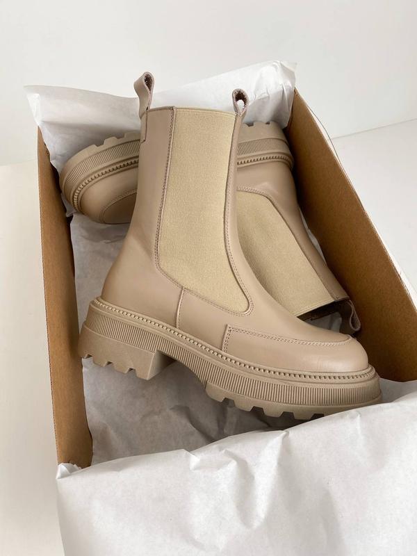 Новинка 😍 шкіряні бежеві демісезонні чоботи челсі
