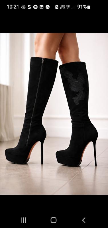 Очень элегантные уточненные.Стильные сапожки демисезонные. Лабутены на тонкой шпильке каблуке.Все в этом году необычно.И так же психоделические каблуки.Кажется что на тонком каблуке устоять не реально.Но практически вы не ощутите разницу между обычным тонким каблуком .Танкетка 2.5см.Каблук 10см. Натуральный замш.На голенище небольшая аппликация. Размер 24.5 стелька.Шикарный выходной сапог. Были одеты на выход в "свет". Нюансов нет.Состояние идеальное.Голенище на тонкую ногу.Оплата.Отсылка.Возможна наложка для примерки с предоплатой услуг почты в оба конца. ноль,67,486,53,03 Даю замеры халявы высота 38см от пятки. ширина 17+ резинки расширители.