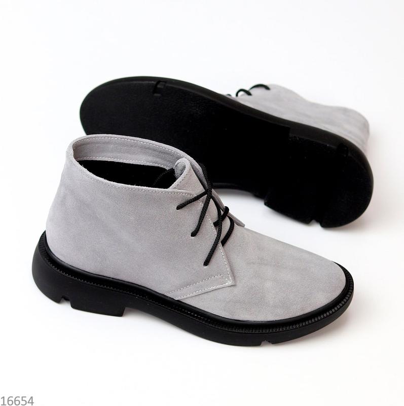 Натуральные замшевые демисезонные серые ботинки на ворсистой флисе