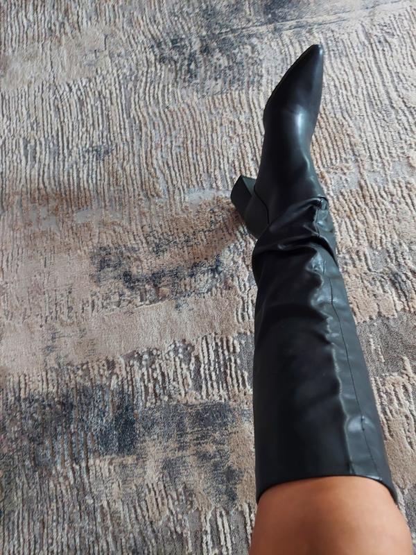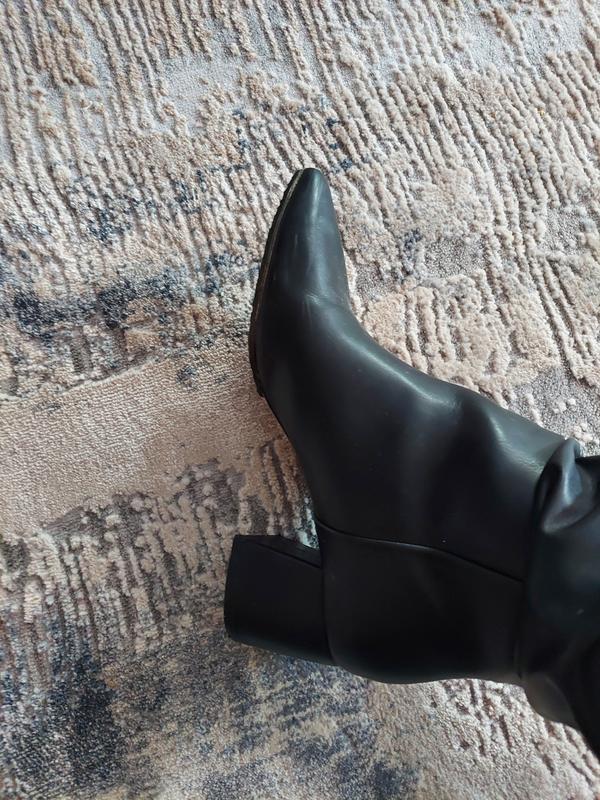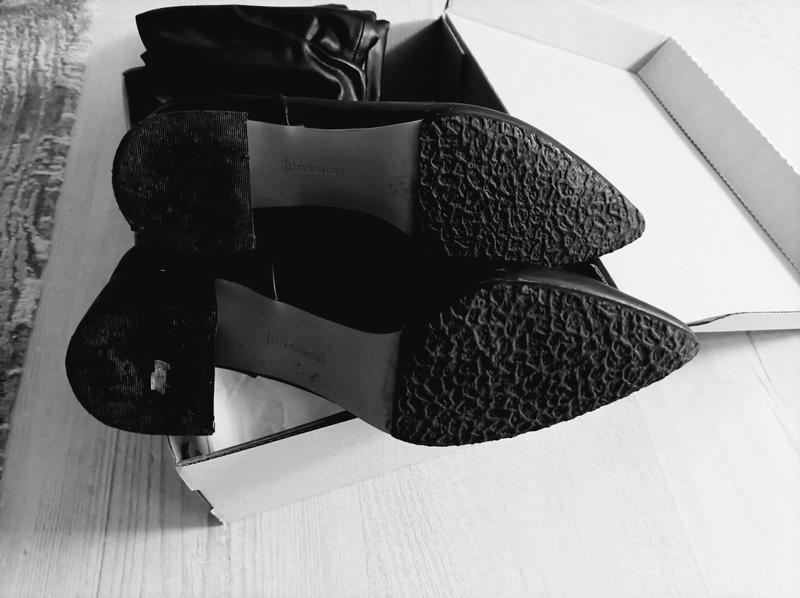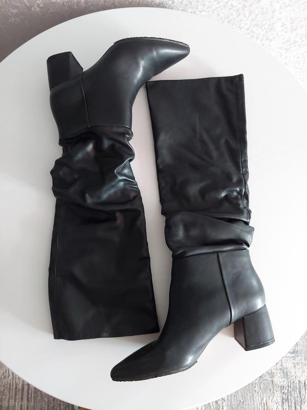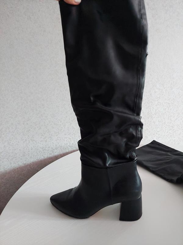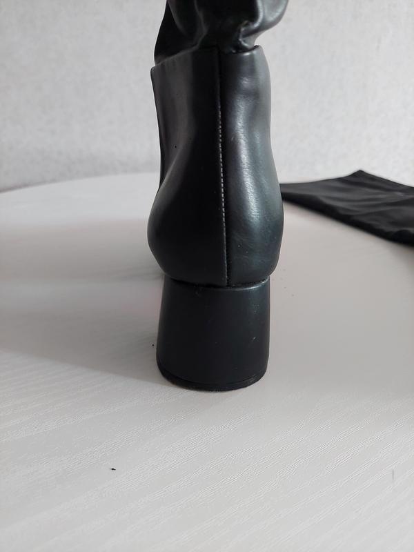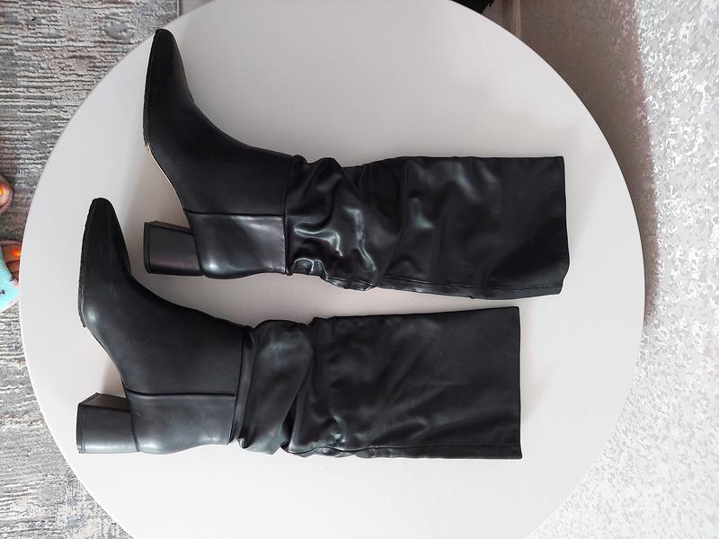 Чоботи осінні!38розмір.По стельці 24-25см,бо видовжений носочок!!.В доброму стані!!Низ шкіра,верх панчошка замінник.!!Каьлук 5 см!!