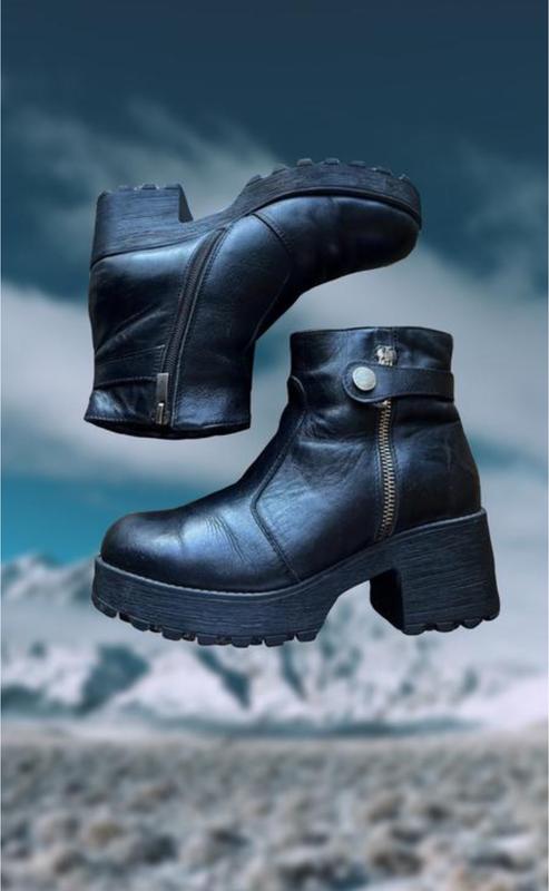 Шкіряні ботильйони чоботи на підборах viscala оригінальні чорні