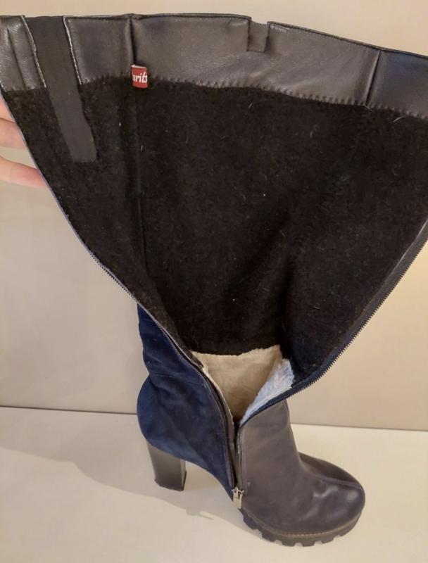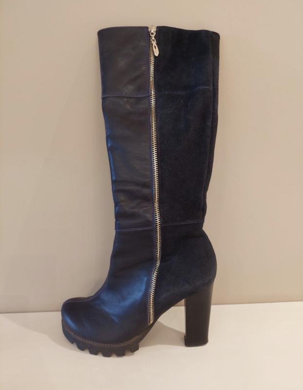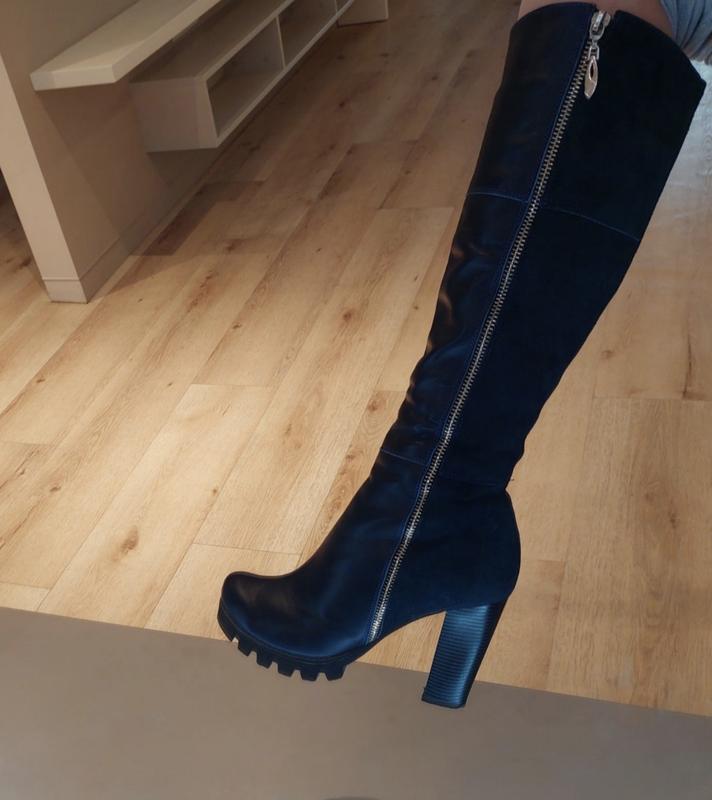 Продам шикарні чоботи з натуральної шкіри + натуральна замша Розмір-39. На ногу 25см +- У відмінному стані. Колір - темно-синій Зручна колодка