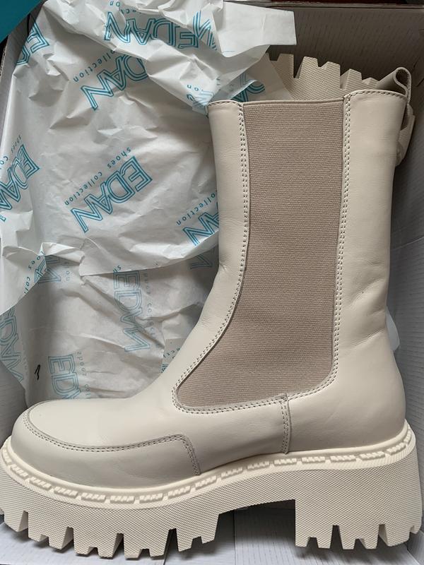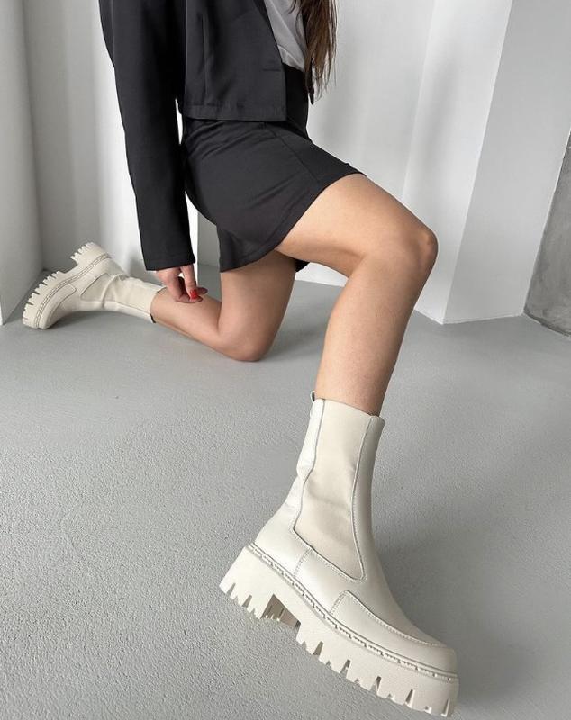 Новинка 😍 шкіряні бежеві демісезонні чоботи челсі