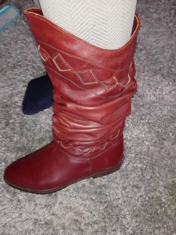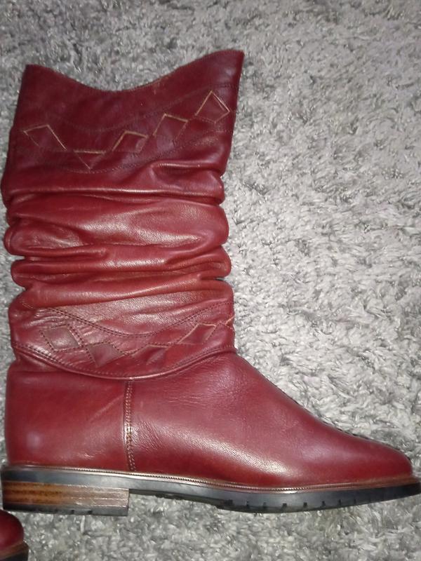 Сапожки женские зима новые кожа Италия размер 37-23.5см, прекрасное качество на густом меху, высота 32см, каблук 2см, ширина стопы 8см, ширина голенища снизу 15см и сверху 17см.