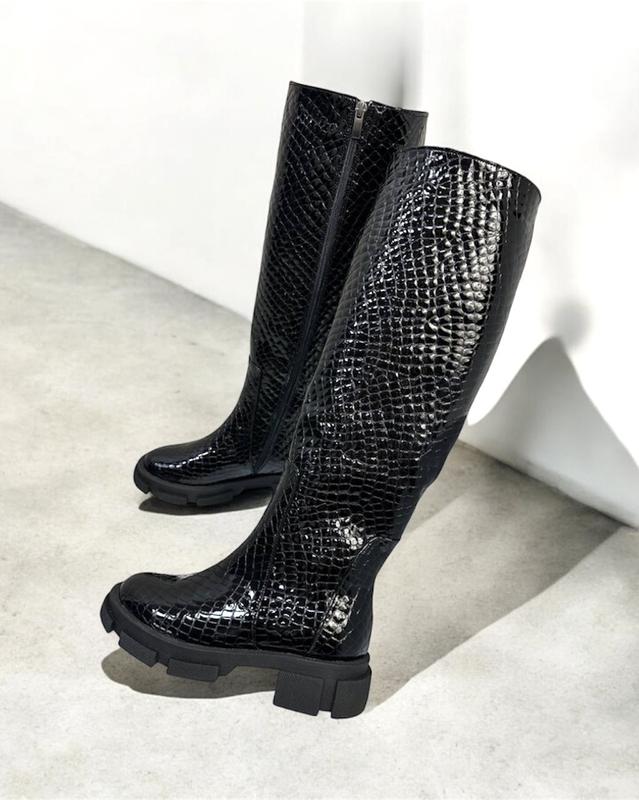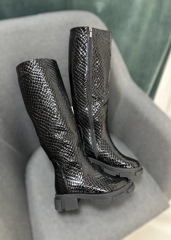Дизайнерские сапоги tower 💈натуральная кожа лак зима демисезон