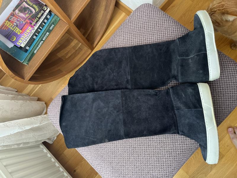 Сапоги, имеют небольшую скрытую платформу, натуральный замш, без подкладки