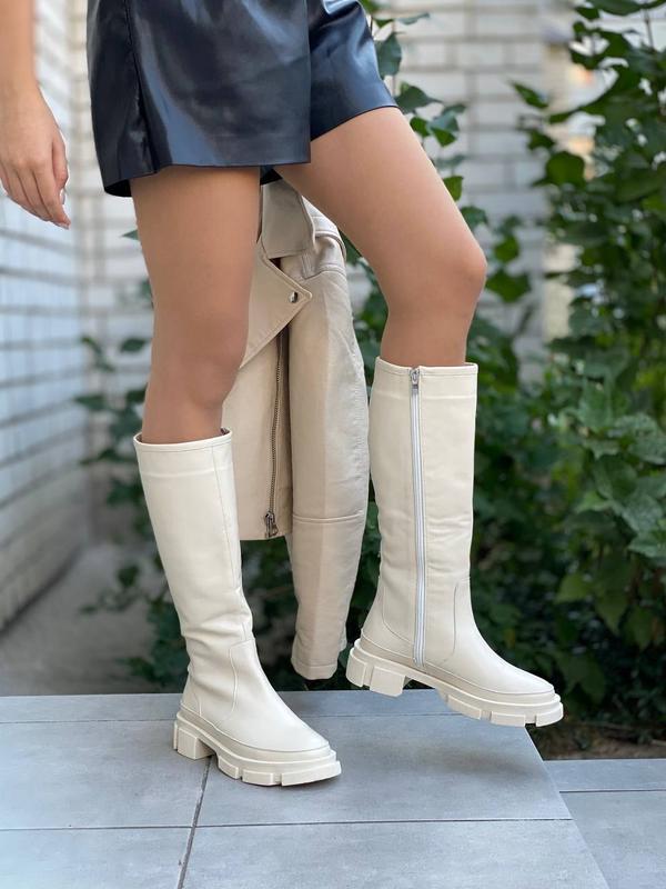 Размеры: 36-41Сезон: Деми Материал: натуральная кожа Цвет: бежевый Внутри: байка
